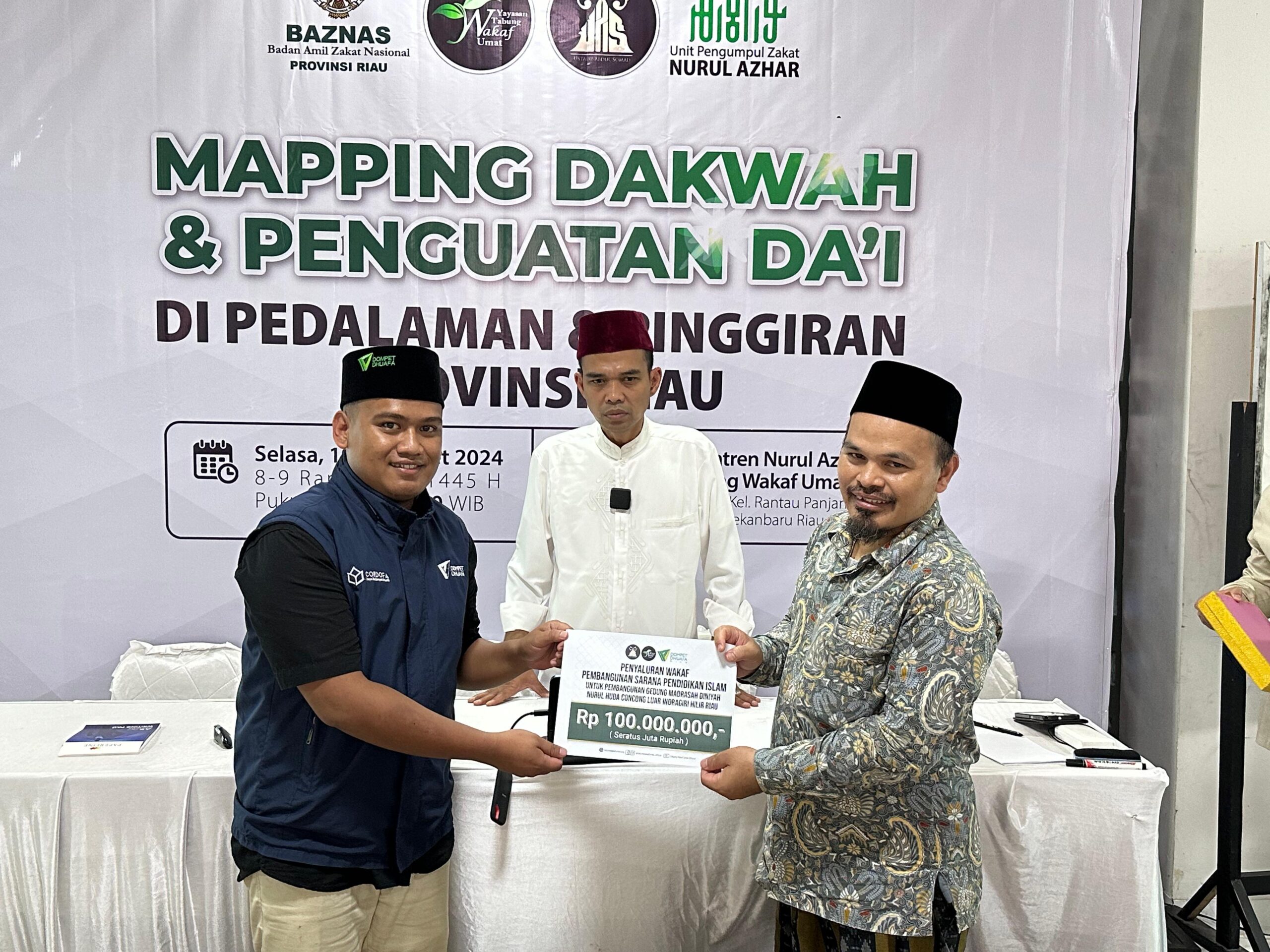 UAS Mapping Dakwah di Riau, YTWU Serahkan Rp100 Juta untuk Bangun Madrasah