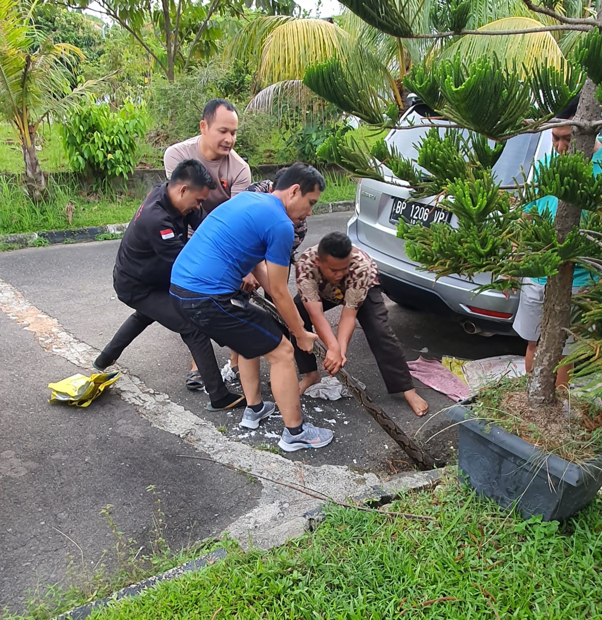Kapolsek Sekupang Tangkap Ular Phyton 3,5 M Di Komplek Taman Duta Mas Batam Center