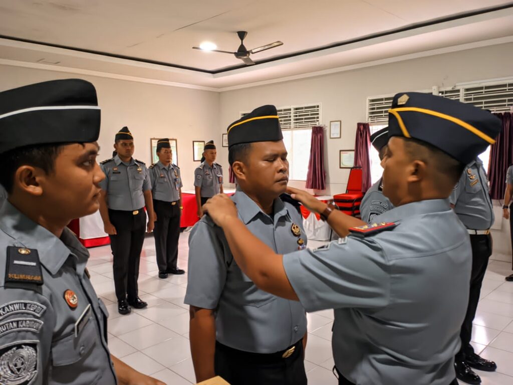 QAYYUMNEWS.ID, Karimun- Upacara Penyematan kenaikan pangkat golongan III kepada 3 (Tiga) Orang Pegawai Rutan Tanjung Balai Karimun, Senin (27/11/2023).