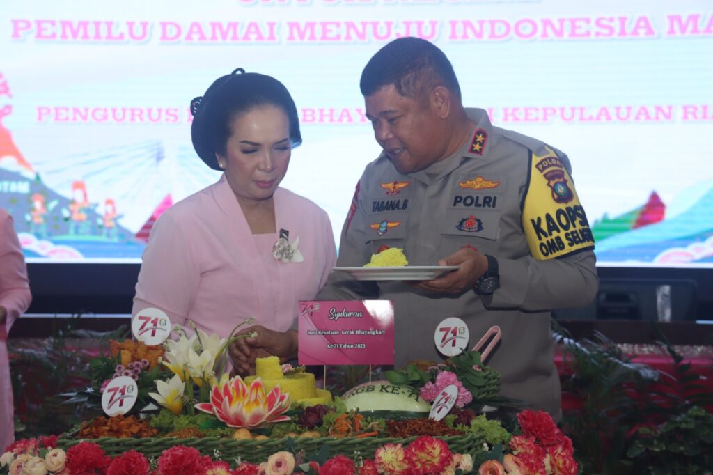 QAYYUMNEWS.ID, Batam – Bhayangkari Daerah Kepri mengadakan acara peringatan Hari Kesatuan Gerak Bhayangkari (HKGB) ke-71 di Graha Lancang Kuning, Polda Kepri, Kamis (19/10/2023) dengan mengangkat tema “Bhayangkari Mendukung Polri Presisi Untuk Negeri, Pemilu Damai Untuk Indonesia Maju”.
