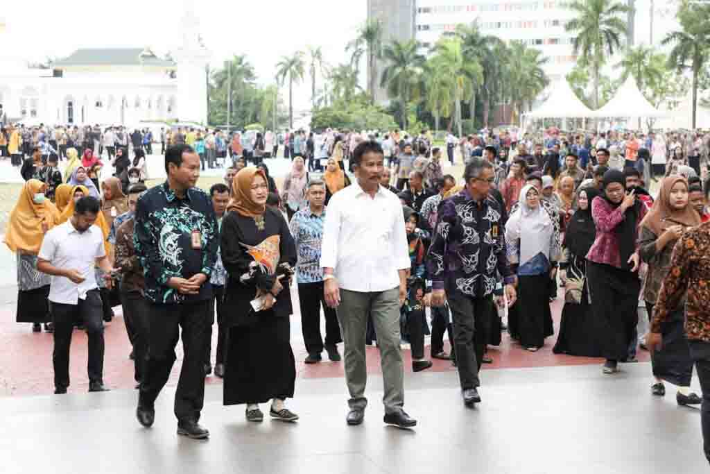Apel ini dihadiri oleh seluruh pegawai di lingkungan Pemko Batam, yang dipimpin langsung oleh Wali Kota Batam, Muhammad Rudi.