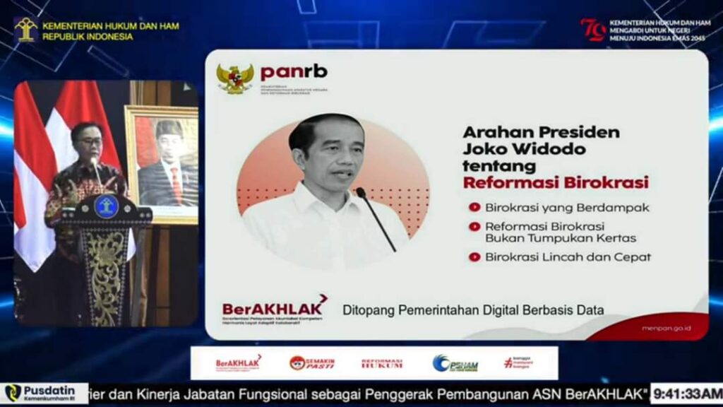 Dilanjutkan dengan pemaparan materi Transformasi Jabatan Fungsional ASN: Mewujudkan Kinerja, Karier dan ASN BerAkhlak dari narasumber Plt.Deputi Bidang Sumber Daya Manusia Kementerian Pendayagunaan Aparatur Negara dan Reformasi Birokrasi, Aba Subagja, dengan dimoderatori oleh Widyaiswara Ahli Madya BPSDM Hukum dan HAM, RD Edy Santoso. Webinar ditutup dengan sesi tanya jawab. (*/hel)