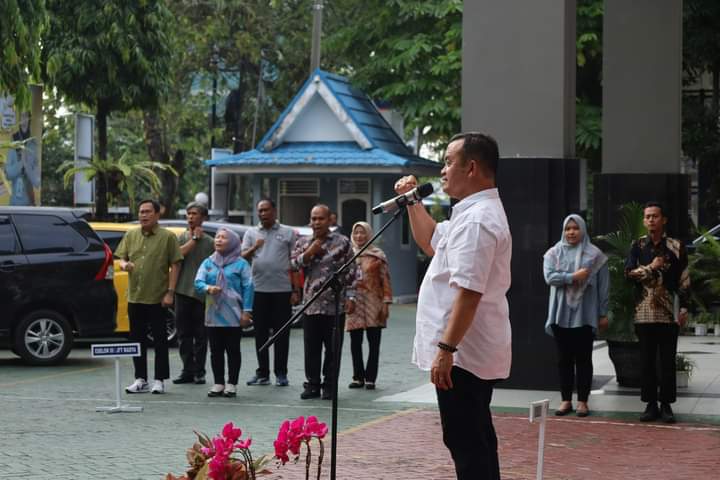 QAYYUMNEWS.ID, Pekanbaru – Kantor Wilayah Kementerian Hukum dan HAM (Kanwil Kemenkumham) Riau menggelar apel sore pada hari Jumat (5/7/2024) di halaman Kantor Wilayah. Apel sore ini diikuti oleh seluruh pegawai Kanwil Kemenkumham Riau, dipimpin oleh Kepala Divisi Administrasi, Johan Manurung mewakili Kepala Kantor Wilayah Kemenkumham Riau, Budi Argap Situngkir.