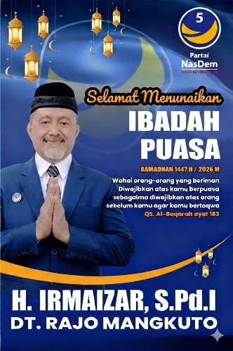 QAYYUMNEWS.ID, Payakumbuh – Anggota DPRD Kota Payakumbuh sekaligus Ketua DPD Partai NasDem Payakumbuh, H. Irmaizar, atas nama keluarga besar DPD NasDem Payakumbuh, mengucapkan selamat memasuki bulan suci Ramadhan 1447 H kepada seluruh masyarakat.