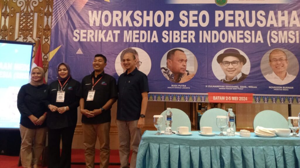 QAYYUMMEWS.ID, Batam– Kepala Dinas Komunikasi Informatika dan Data Statistik (Diskominfotik) Riau Ikhwan Ridwan melalui Sekretaris Devi Rizaldi membuka secara resmi Workshop SEO Media Perusahaan Pers Serikat Media Siber Indonesia (SMSI) Provinsi Riau, Kamis (2/05/2024) petang, di Batam City Hotel.